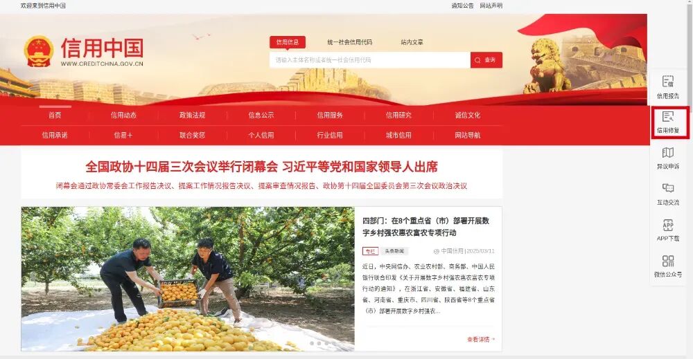 1. 打开“信用中国”网站(网址:https://www.creditchina.gov.cn/),也能长按指南里的二维码直接跳转;